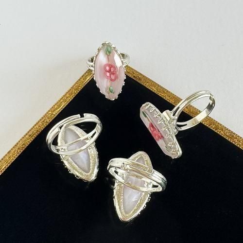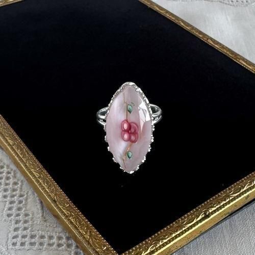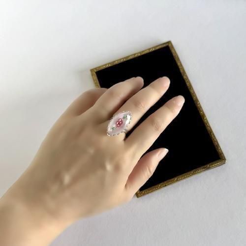 チェコ製 ハンドメイドガラスの指輪 花 ピンク