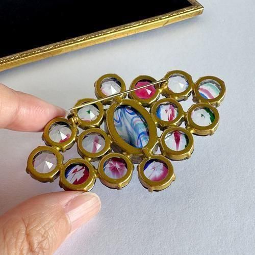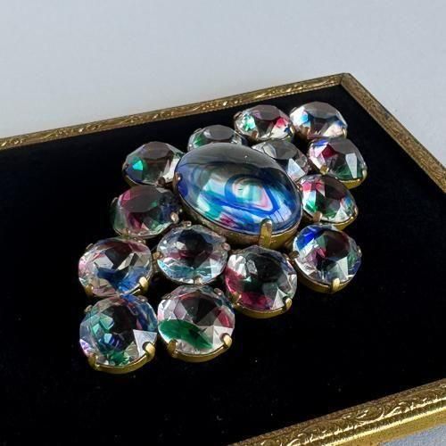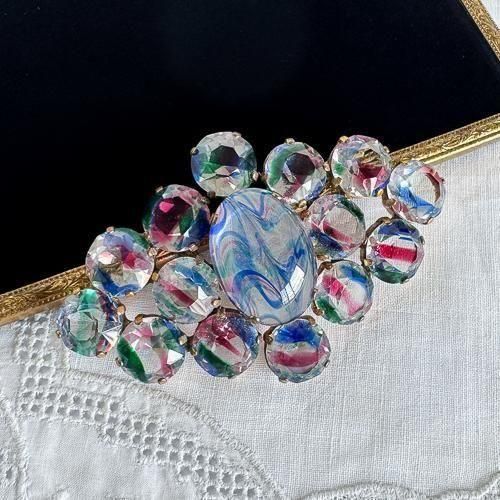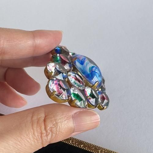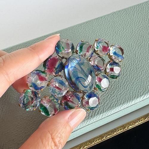 チェコ製 アイリスガラスのジュエリー 13 ひし形ブローチ