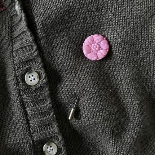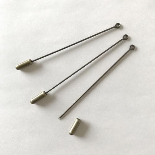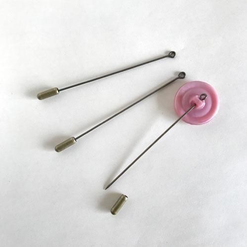 ガラスボタンをブローチ(ハットピン)としてお楽しみいただくために仕入れた金具です。