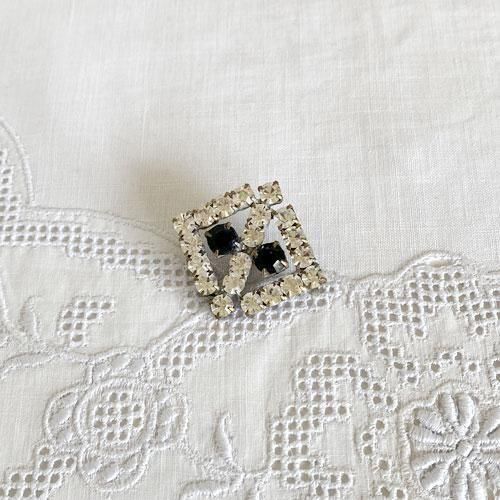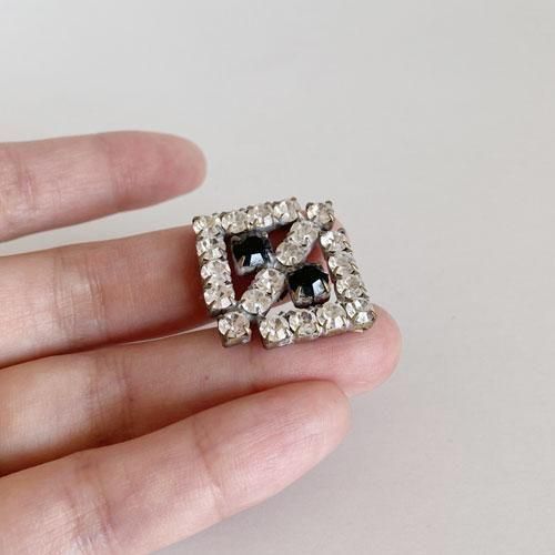 チェコ ガラス製ラインストーンのボタン 33 黒×クリア