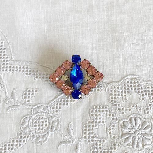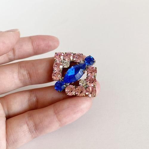 チェコ ガラス製ラインストーンのボタン 37 ナベット青×ピンク