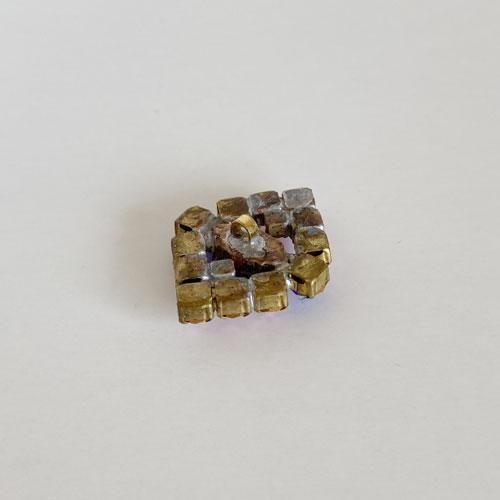 ガラス製のラインストーンや金属型を溶接して作られています。