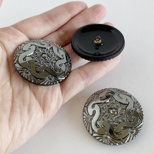 チェコのガラスボタン 40mm 黒にメタリック加工 特大