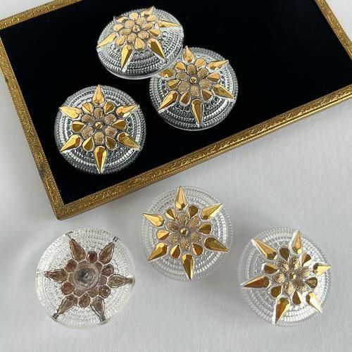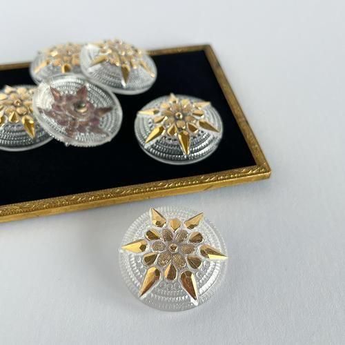 チェコのガラスボタン 36mm 透明にゴールド花
