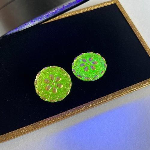 ボヘミアガラスで有名なチェコの町、ヤブロネッツで作られたガラスボタンです。