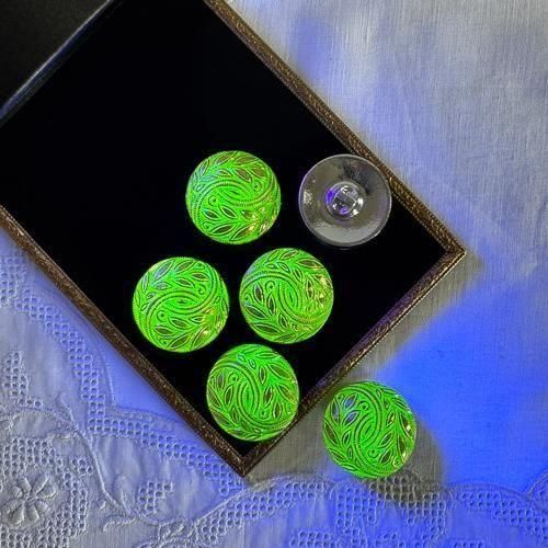 ブラックライト(強い紫外線)を当てると蛍光に光るウランガラスで作れらています。