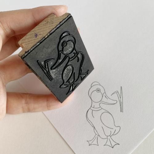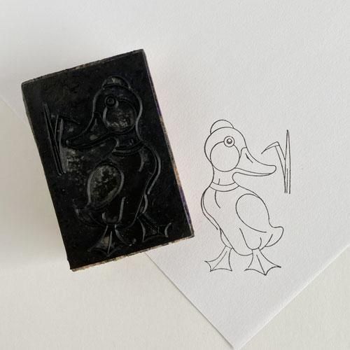 ゴム印部分が劣化していますので、押すとイラストが多少かすれますが、古いものならではの味わいとしてお楽しみください。