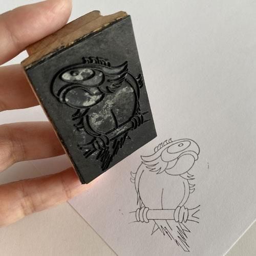 ゴム印部分が劣化していますので、押すとイラストが多少かすれますが、古いものならではの味わいとしてお楽しみください。
