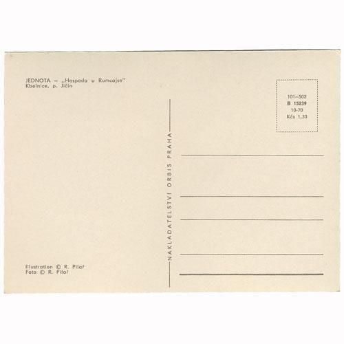 こちらのポストカードは、ルムツァイスが住んでいるという設定の山の麓にあるホスポダ(ビアホール)のものです。