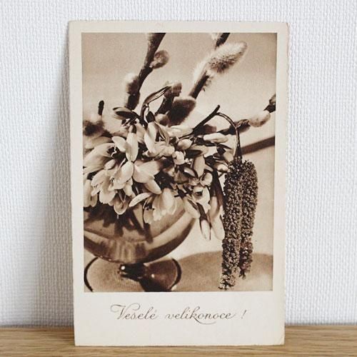 チェコ1940-50年代のポストカード(未使用) グラスに活けた花