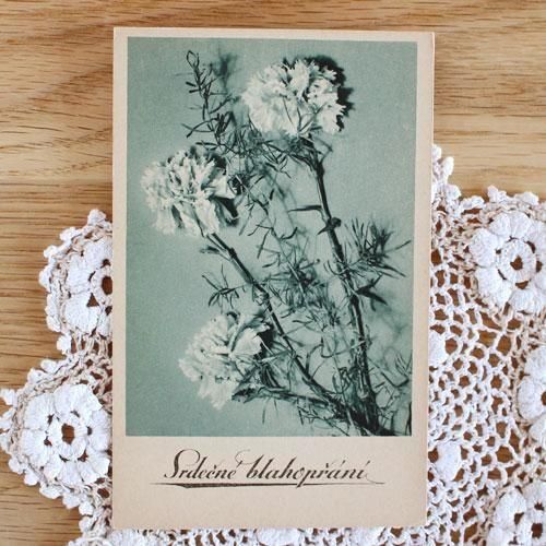 チェコ1940-50年代のポストカード(未使用) カーネーション