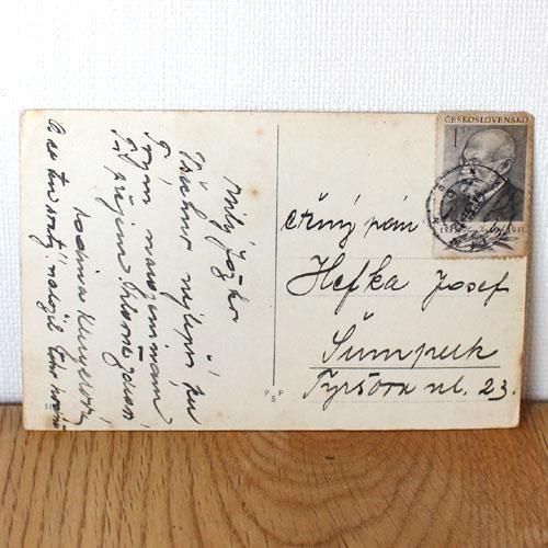 チェコスロヴァキア時代、1940年代〜50年代に作られたヴィンテージのポストカードです。