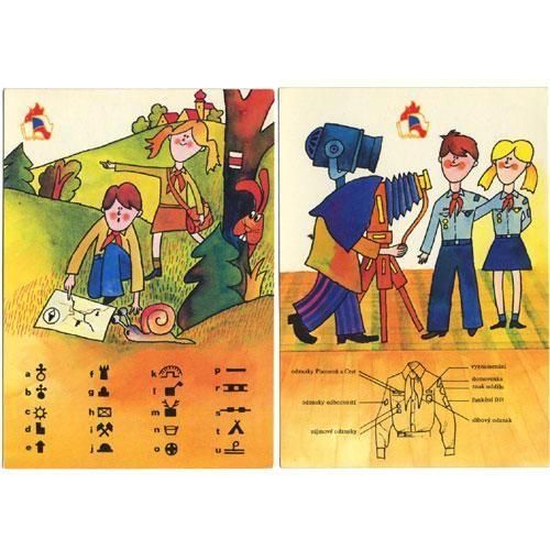 チェコスロヴァキア時代に共産主義政府の指導で組織されていた少年少女団体「Pionyr」の活動を描いたポストカードです。
