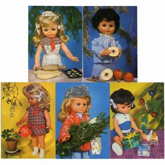 チェコの古いポストカード5枚セット(未使用) 伝統的なお人形