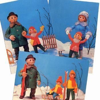 チェコの古いポストカード3枚セット(未使用) 雪山で遊ぶ家族