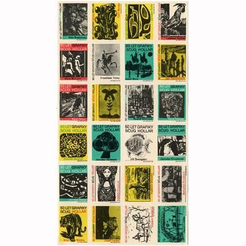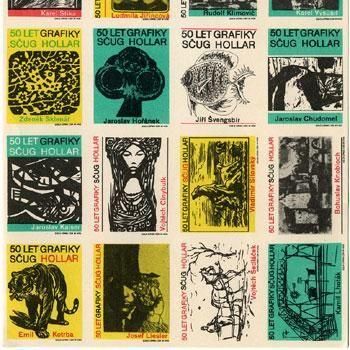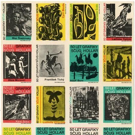 白黒でなんとなく怖い雰囲気のマッチラベルなので、ホラーなグラフィックを集めたものかと思ったら、1917年に創設されたプラハのGALERIE HOLLARの50周年を記念して作られたものでした。