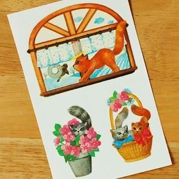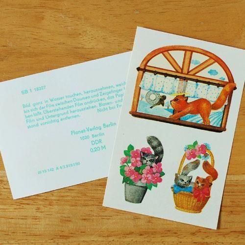 東ドイツの古い水シール 窓辺で遊ぶ猫