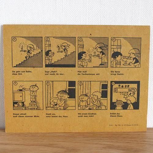 裏面には火には注意をするようにという内容の4コマ漫画が描かれています。