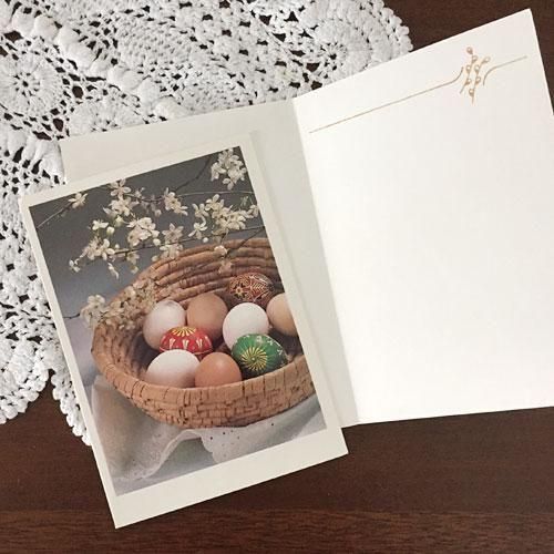 チェコスロヴァキア時代の二つ折りカード(未使用)カゴ盛りのろうけつ染めのイースターエッグ