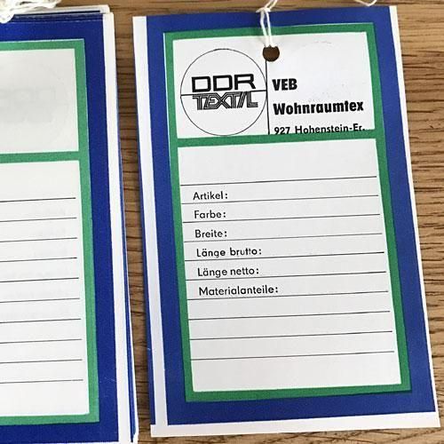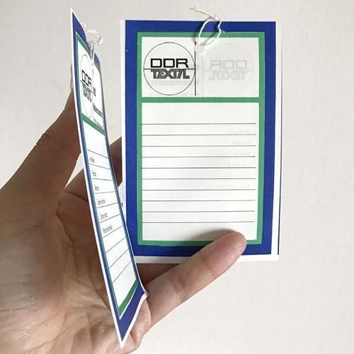 東ドイツ時代のテキスタイルメーカー「DDR TEXTIL」の品質表示用の紙タグです。