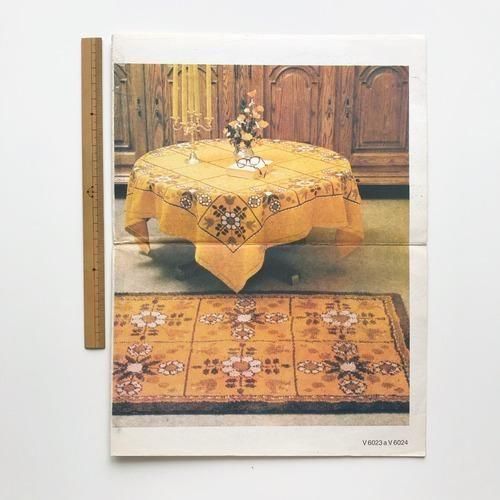 表紙のテーブルクロスとラグに使用しているクロスステッチのパターンが3種紹介されています。
