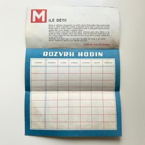 チェコスロヴァキア時代に国営保険会社が発行した時間割表