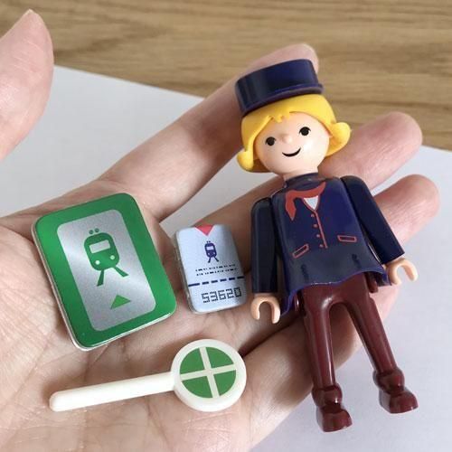 車掌さんの女の子と案内棒などがセットになっています。時刻表などは紙製です。