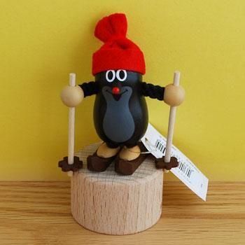もぐらのクルテク 木製プッシュトイ スキーをするクルテク