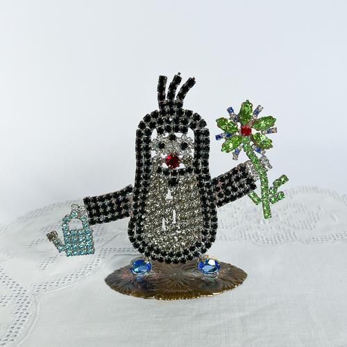 もぐらのクルテク チェコガラス製ラインストーンのクルテク 黄緑お花×青の足