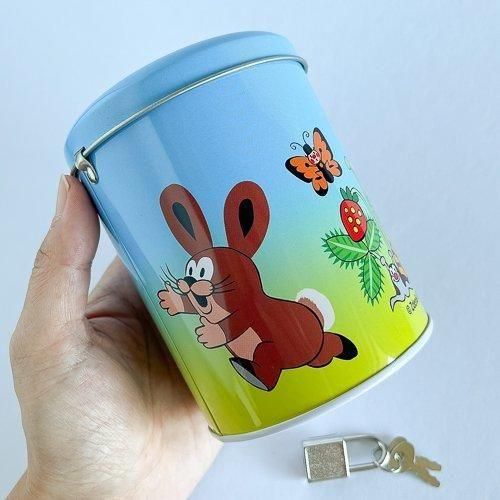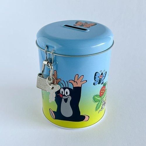 【限定入荷】もぐらのクルテク TIN製貯金箱 円筒