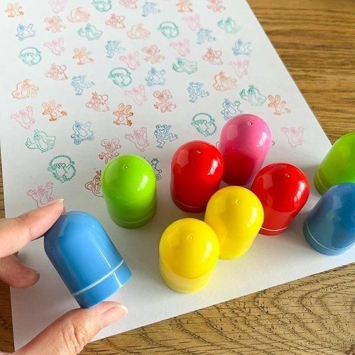 シャチハタのようにインクが内蔵されているタイプのスタンプで、ポンポン押して楽しめます。