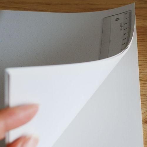 表紙はそばかすのあるザラっとした質感の厚紙、中ページはリサイクルペーパーを使用しています。
