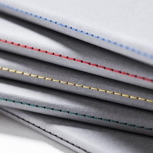表紙はザラっとした質感の厚紙、中ページはリサイクルペーパーを使用しています。