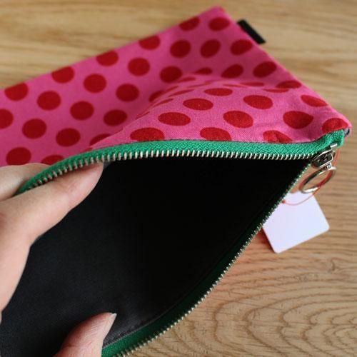 ファスナーは緑、内側は濃いグレー、表のピンクとの色の組み合わせが素敵です。