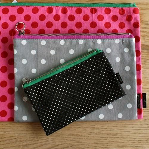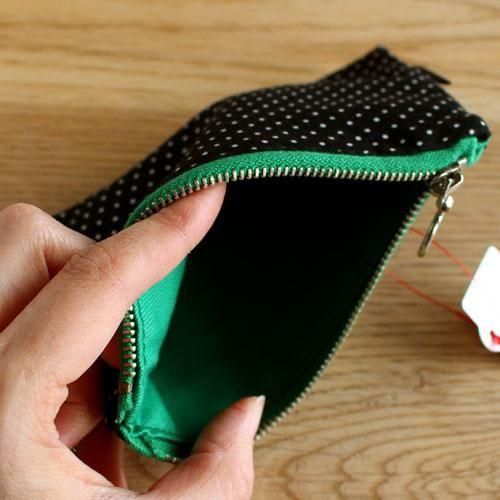 ファスナーは緑、内側も緑、表の黒ドットとの色の組み合わせが素敵です。