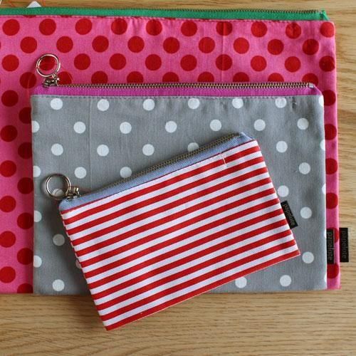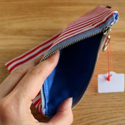 ファスナーはグレー、内側は青、表の赤ボーダーとの色の組み合わせが素敵です。