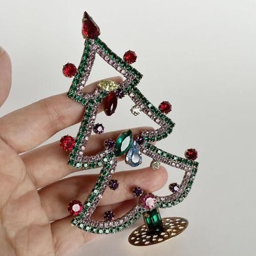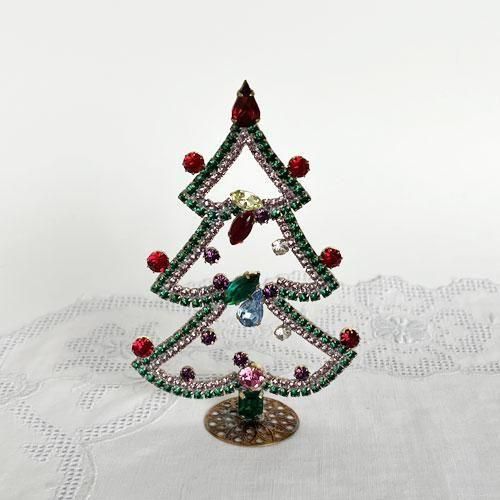 チェコ ガラス製ラインストーンのクリスマスツリー 140 緑×赤黄緑