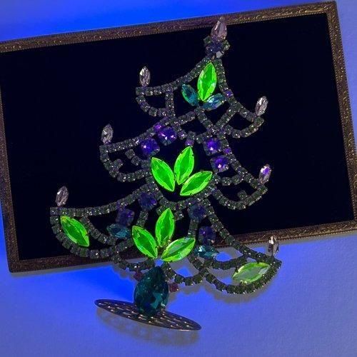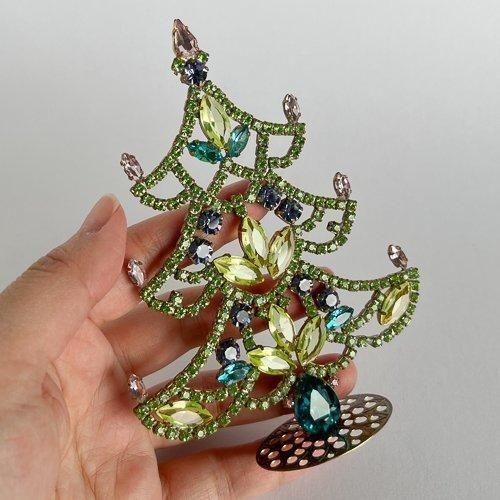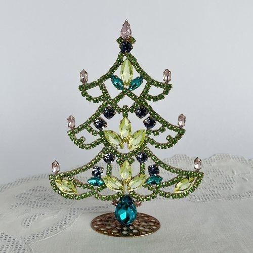 チェコ ガラス製ラインストーンのクリスマスツリー 207 大粒水色×ウランガラス