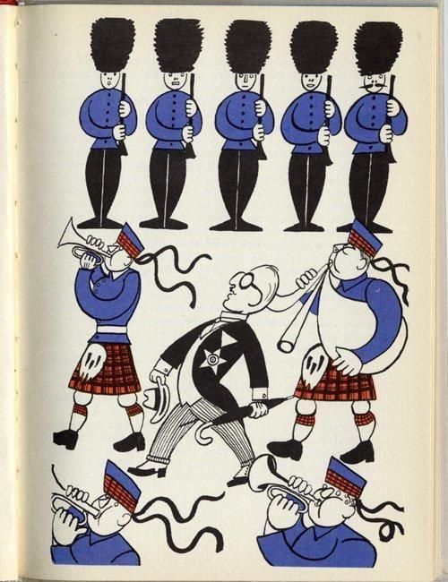 アドルフ・ホフマイステルの絵本といえば「Pohlednice」という絵葉書をテーマにした作品があるのですが、こちらは切手のお話。フランチシェク・ランゲルによる切手にまつわる作品が7点収められた書籍です。少ない色数とシンプルな線で描きあげられたイラストと、コラージュが組み合わされたイラストなど、ホフマイステルの完成した作品の魅力が伝わってくる一冊です。全130ページ、イラストは挿絵作品としては比較的多めで28点。半分ほどがページ一面を使って描かれたイラストで、残りの半分も割りと大き目のイラストで構成されています。タイポグラフィーを担当しているのがオルドジーフ・フラヴサというのもポイントですね。