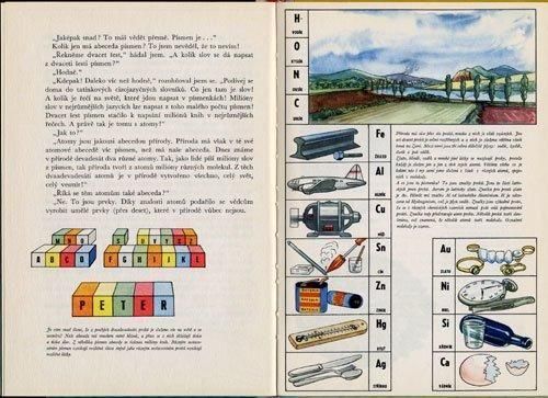 科学、原子について勉強するための本です。84ページ、ほぼ全ての見開きにイラスト、もしくは写真があります。イラストを担当しているのはコミカルなイラストから写実的なイラストまで、綺麗な色使いで描くドブロスラフ・フォル。こういった学習絵本から、普通の絵本まで幅広く手がける僕も大好きなイラストレーターです。様々な絵本の装丁デザインなどを手がけていることでも良く知られた人物です。真面目過ぎず、かわい過ぎないそっと本棚に置いておきたい絵本です。少し擦れなどはありますが状態良好です。