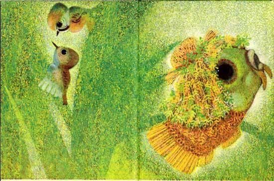 ギョロ目の魚、緑色と言うキーワードで思いつくのは、もちろんヤン・クドゥラーチェク。特にこちらの絵本は全ての見開きに両面を使ってイラストが大きく描かれており、クドゥラーチェクのファンには非常にオススメです。見開きも表裏で違うイラストが描かれています。全66ページ。