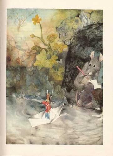 こちらは発色の鮮やかな1967年版。全146ページに収録されているお話は14編という寄りぬきバージョンです。ページ一面を使ったイラストは15点。各話の頭にカラーのカットとモノクロのカットも数点あります。表紙カバーのビニールコーティングにすこし浮きがありますが状態良好です。