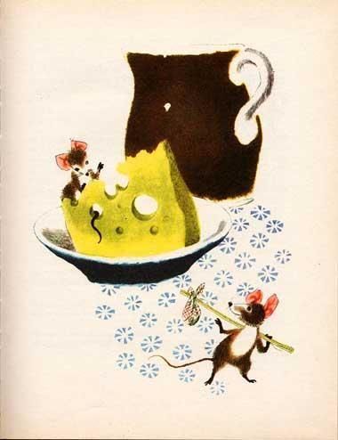 コチラの絵本の1974年版。「bajky」とは直訳すると「fantastic story」つまり夢のような話と言うことです。2ページぐらいで終わってしまうような短いお話が多数収録されています。ページ一面を使ってのカラーイラストが9点。モノクロのイラストも多数収録されています。全90ページ。あと、見返しのイラストもかわいいですよ。擦れなどの傷みは多少あるものの比較的状態良好です。