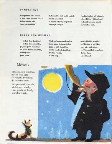 フランチシェク・フルビーンとイジー・トゥルンカのコンビで描かれた絵本と言うのはたくさんありますが、これはその黄金コンビの絵本を集めたオムニバス絵本です。1910年生まれのFranti?ek Hrub?nの生誕50周年を記念して発行されたメモリアルな一冊。そんなわけで扉にはフルビーンの肖像が描かれています。