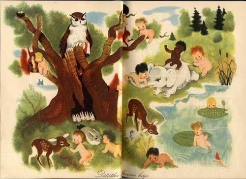 「幼いズザナは世界を発見する」と言うタイトルで、ファーストエディションはMelantrichから1940年に出版されていますが、こちらは46年版。イラストの発色の鮮やかさには眼を見張る物があります。2004年に愛知県などで開催されたイジー・トゥルンカ展の図録によると、この絵本はトゥルンカの妻であるヘレナがテキストを書き、娘のズザナに贈ったもので、彼女の現在の家のリビングにはこの挿絵原画が飾られているそうです。