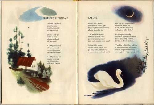 23編の詩にトゥルンカが美しいイラストをつけた絵本です。全30ページほど、全ての見開きにイラストがあります。発色が美しくイラストも優しい素敵な一冊です。初版は1952年ですが、こちらは1953年版です。SNDKから発行される中では初版となります。