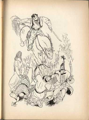 ヤン・フデツの「スラブ童話集」にトゥルンカが挿絵を手がけた作品。1940年発行とかなり初期の作品になります。初期作品の中でも見かける頻度の低いレアな一冊です。挿絵は全てモノクロの線画によるものですが、丁寧に描かれていて、どこと無くその後のイラストのタッチを思わせる片鱗が見えます。224ページに20点のイラスト。そのうち10点がページ一面を使って描かれています。