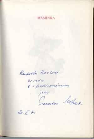 ヤロスラフ・サイフェルトの詩集、「マミンカ」にトゥルンカがイラストを担当した絵本。トビラページにサイフェルトのサインが書かれています。サイフェルトは1984年にノーベル文学賞を受賞している国民的な詩人です。日本語にも翻訳され出版されています。状態良好。