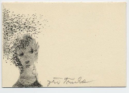 ヴィーチェスラフ・ネズヴァルの「ファンタスティック・シンフォニー」という作品にイジー・トゥルンカが挿絵を担当した作品です。小さなサイズの書籍で全64ページ、と言っても綴じられておらず、巻きつけの外カバーに挟まれています。トゥルンカのイラストは全てモノクロのリトグラフです。また、扉絵の下部にトゥルンカのサインがあります。500部限定での発行なので全ての本にサインが書かれているようです。収録されているイラストは6点。前述の通り全てがモノクロのリトグラフです。見返しに元の持ち主によるサインがあります。比較的状態良好。希少なコレクターズアイテムなのでトゥルンカコレクターの方はお早めに。