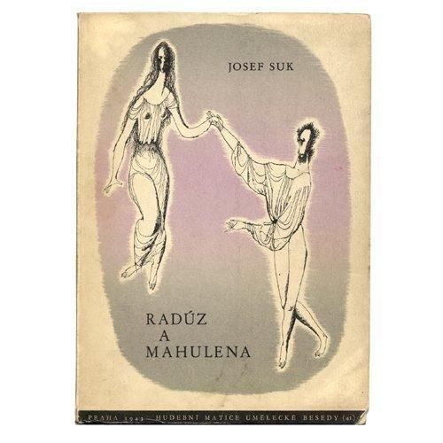 スロヴァキアの民話をベースにしたユリウス・ゼイエルの作品「ラドゥースとマフレナ」という作品で使われる音楽の本。ヨゼフ・スークの音楽作品で楽譜などが収録されています。表紙のイラストを手掛けているのがイジー・トゥルンカです。1943年の作品でシンプルなイラストながら、背景の美しさと相まって素敵なデザインに仕上がっています。扉にも1点イラストがありますがそちらはトゥルンカのものではありません。ソフトカバーで40年前半の本、ということで状態の悪いものが多いのですが。コチラは比較的良いほうだと思います。といっても背表紙下部に経年劣化による亀裂破れが1cmほど。細かい破れが数ヶ所と日焼けや擦れなどによる傷みが多少あります。コレクターの方にオススメです。全100ページ。